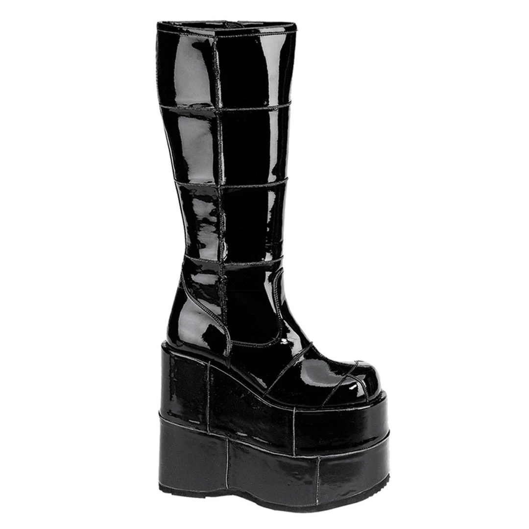 Black Patent Patched Knee Boot