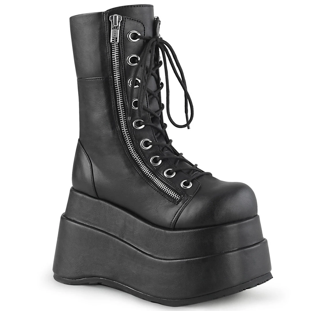Tiered Platform Lace-Up Front Mid-Calf Gothic Boot Featuring Outer & Inner Metal Zip Closure