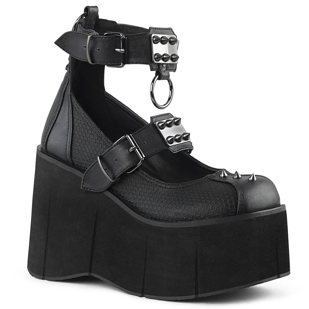 Platform Gothic‚ Maryjane Featuring Dual Buckle Straps with Cone Spike Studded Metal Plates & O-Ring Details