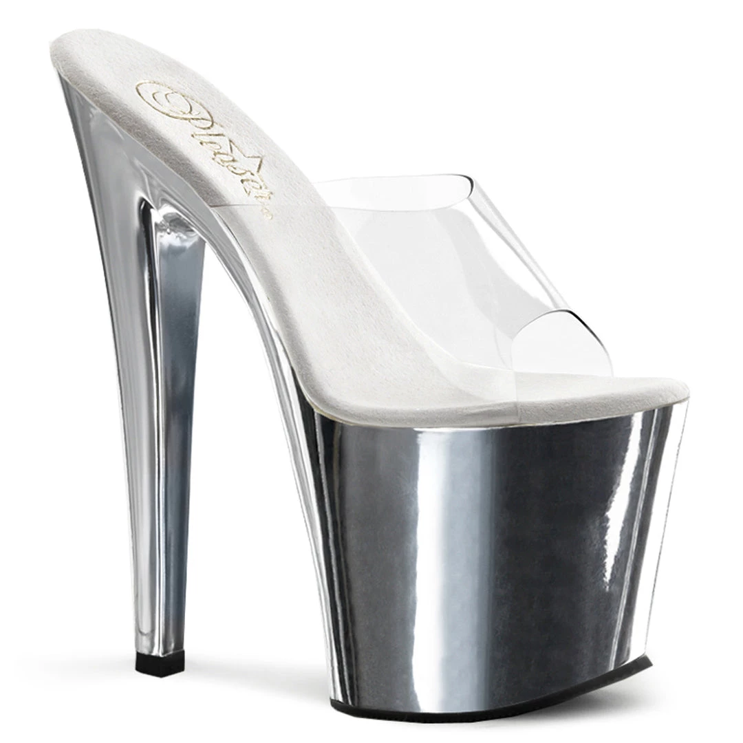 Silver Chrome Platform Slide Stripper Shoe with Clear Upper