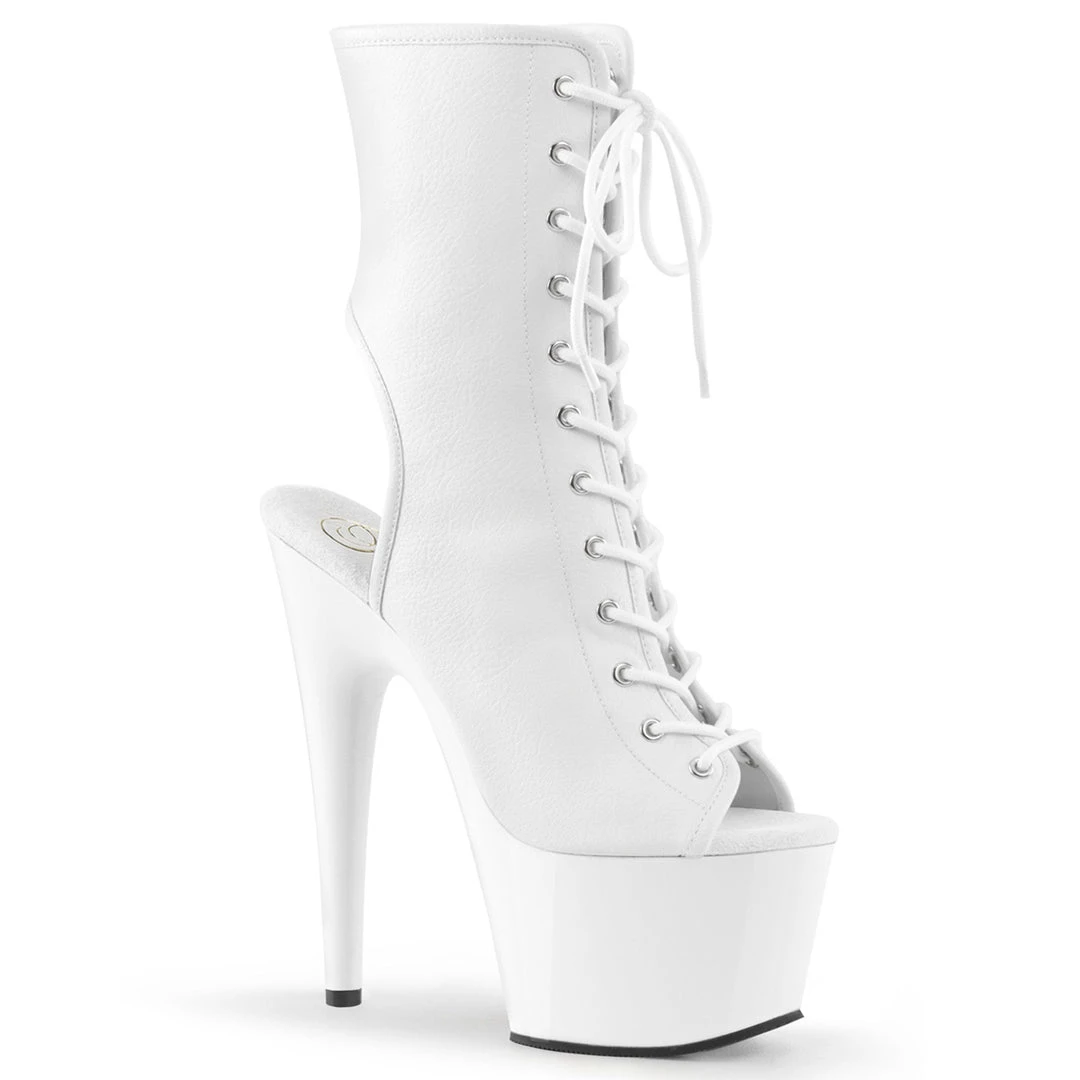 White Open Toe/Stiletto Heel Front Lace-Up Ankle High Exotic Dancer Boot