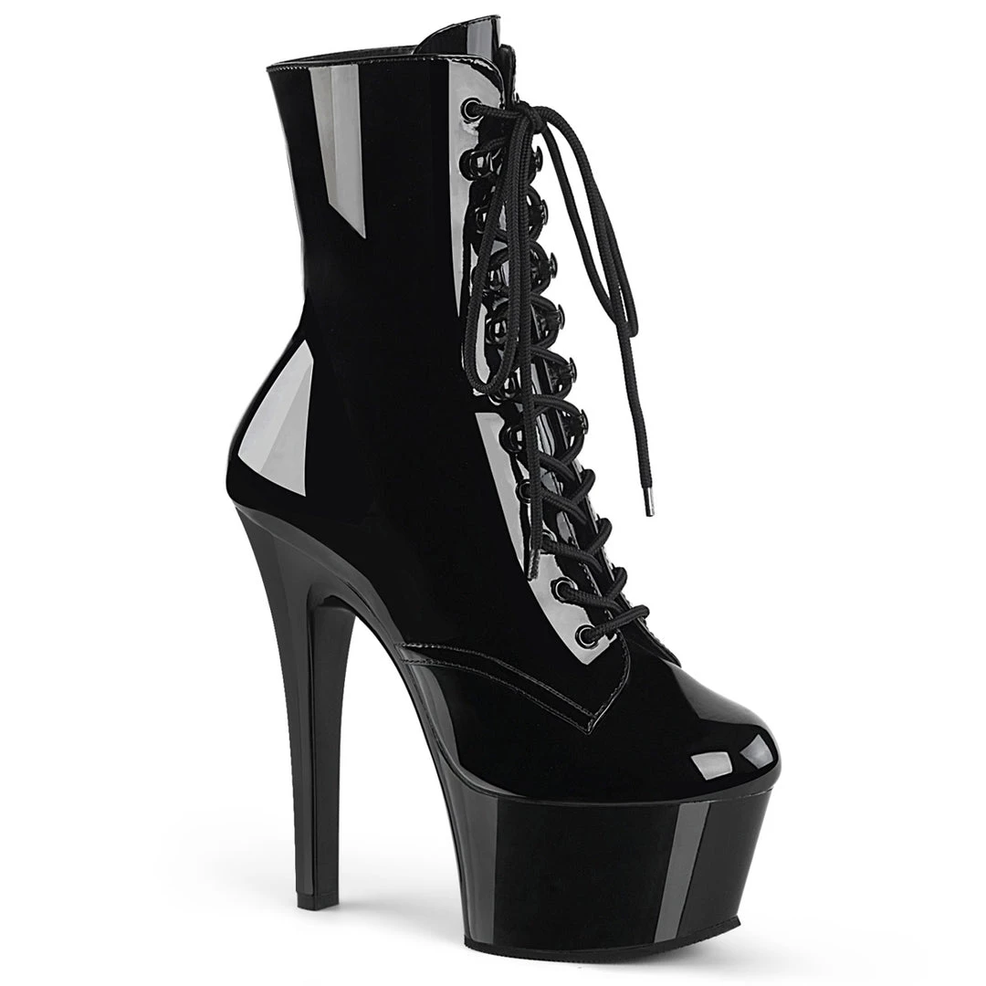 Black Patent Platform Lace-Up Ankle High Stripper Boots‚Â