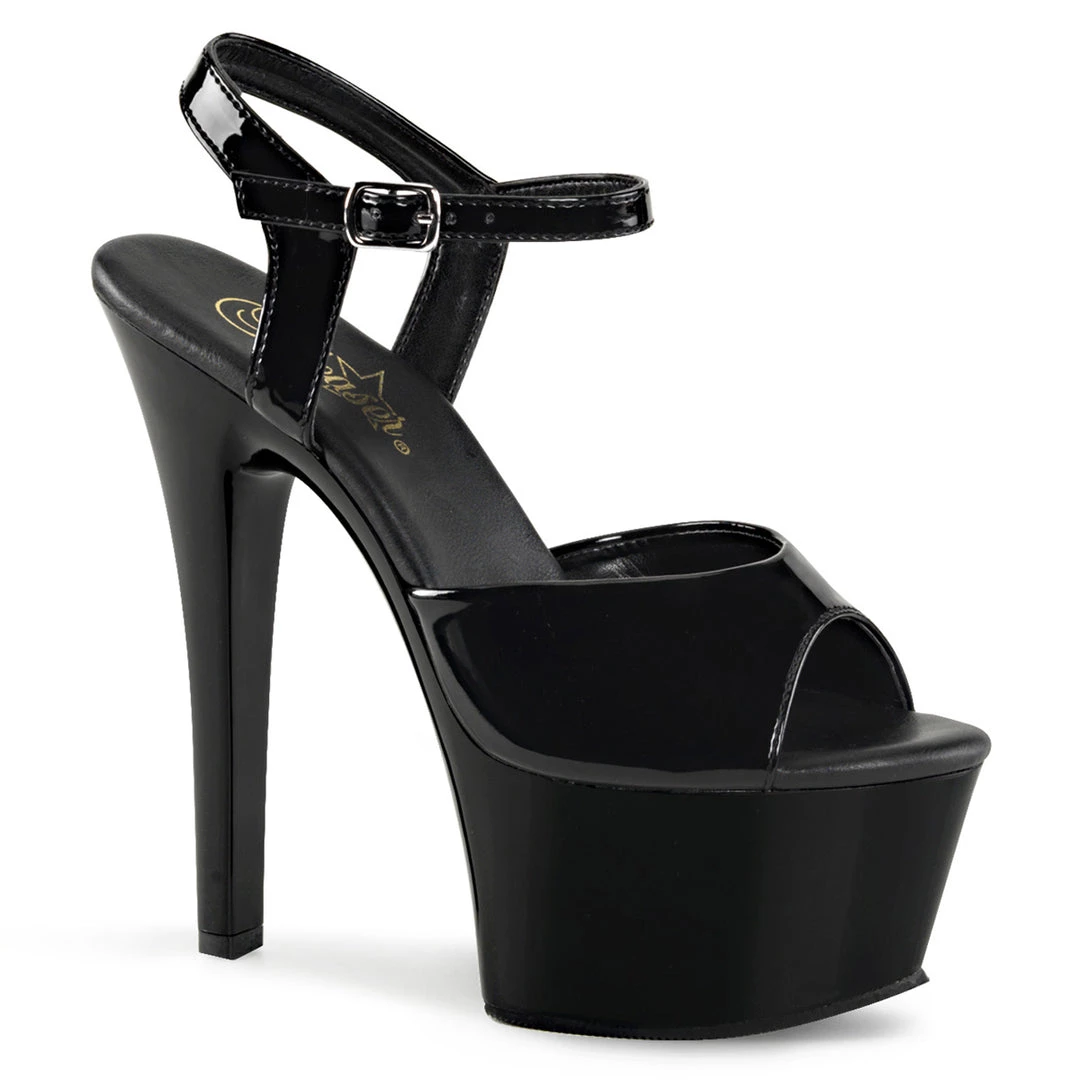Black Patent Platform Ankle Strap Comfortable Pole Dancing Sandal Featuring Vegan Leather Insole