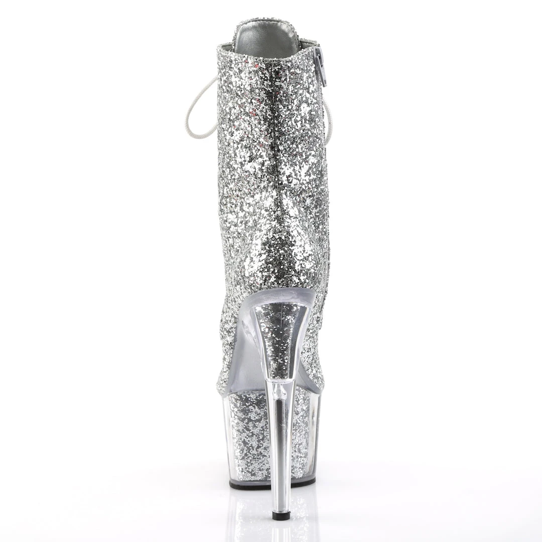 Glitter-filled Platform Front Lace-Up Ankle High Stripper Boot