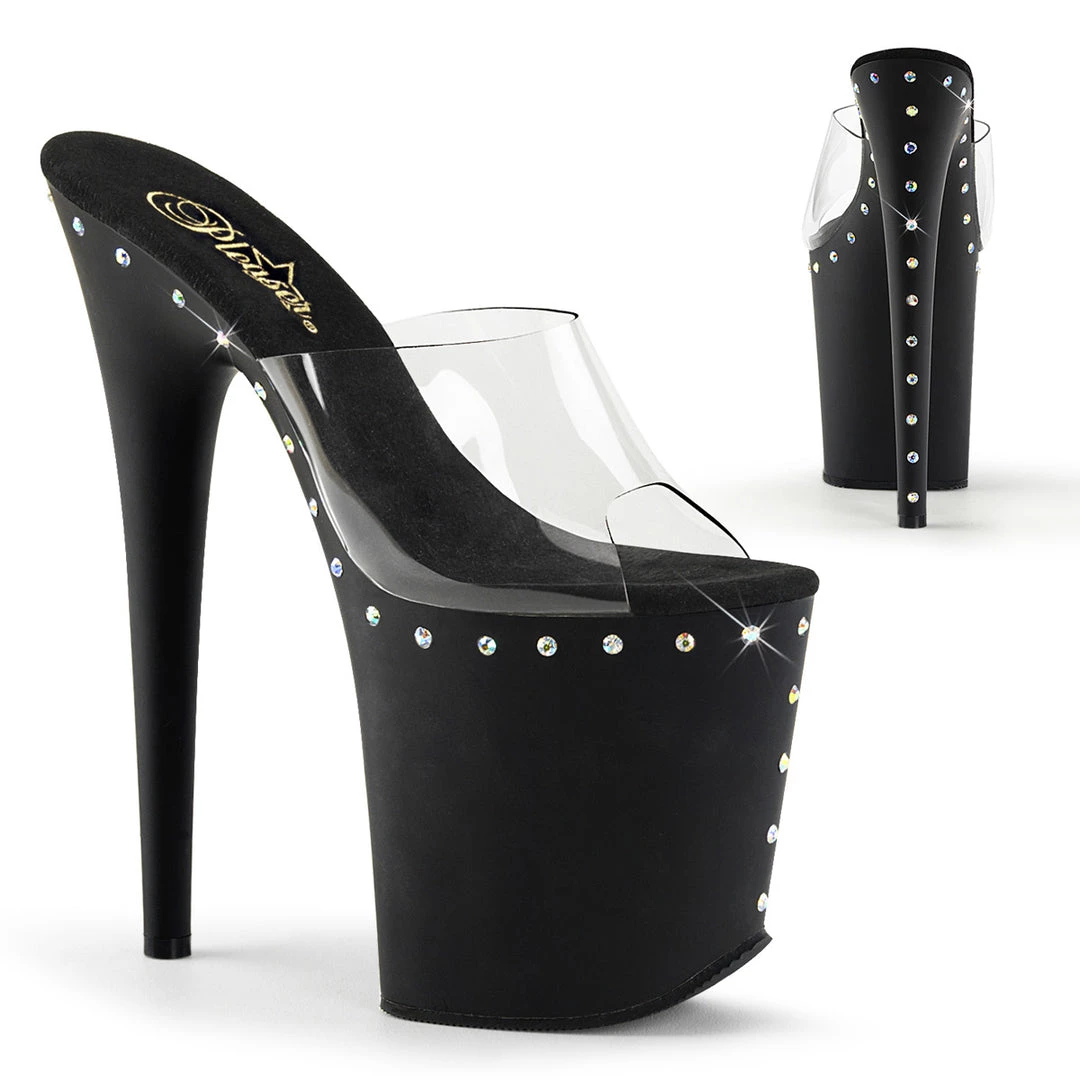 Platform Slide Stripper Sandal‚ Featuring AB Lined Rhinestones on the Platform‚Â