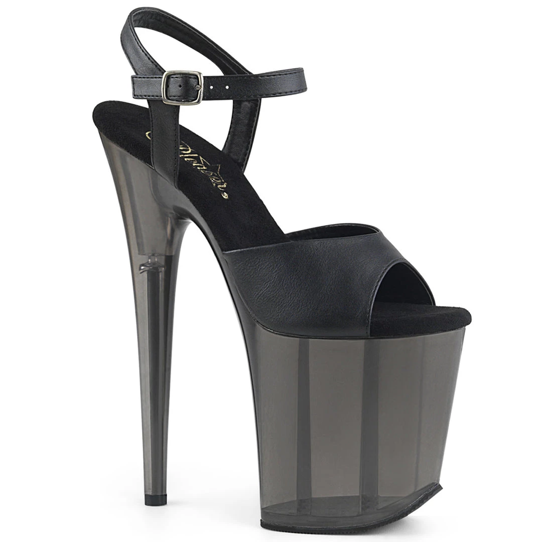 Black Tinted Platform Ankle Strapâ Exotic Dancer Shoe, Black Faux Leather Upper