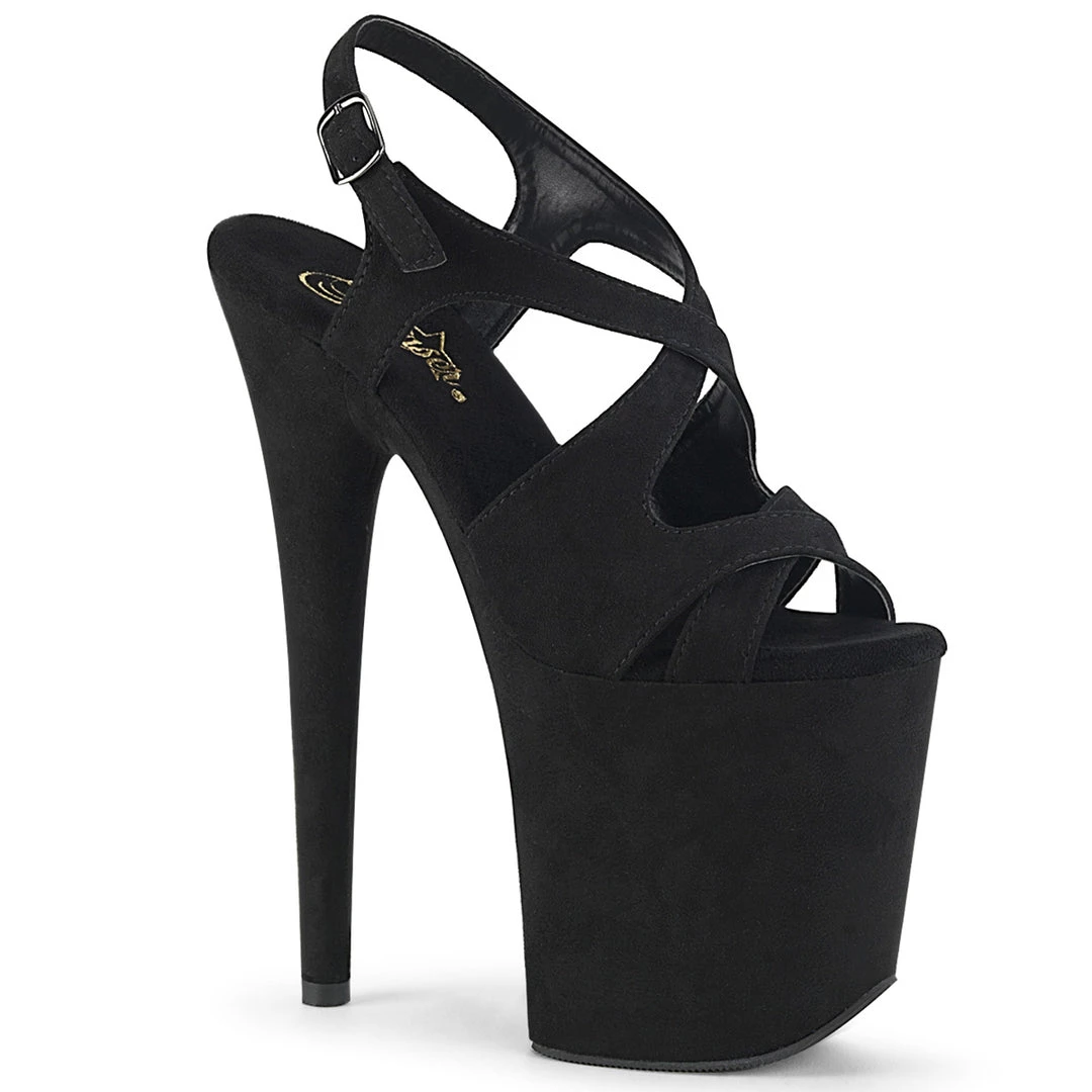 Black Faux Suede Platform Double Crisscross Sling Back Exotic Dancer Shoe‚Â