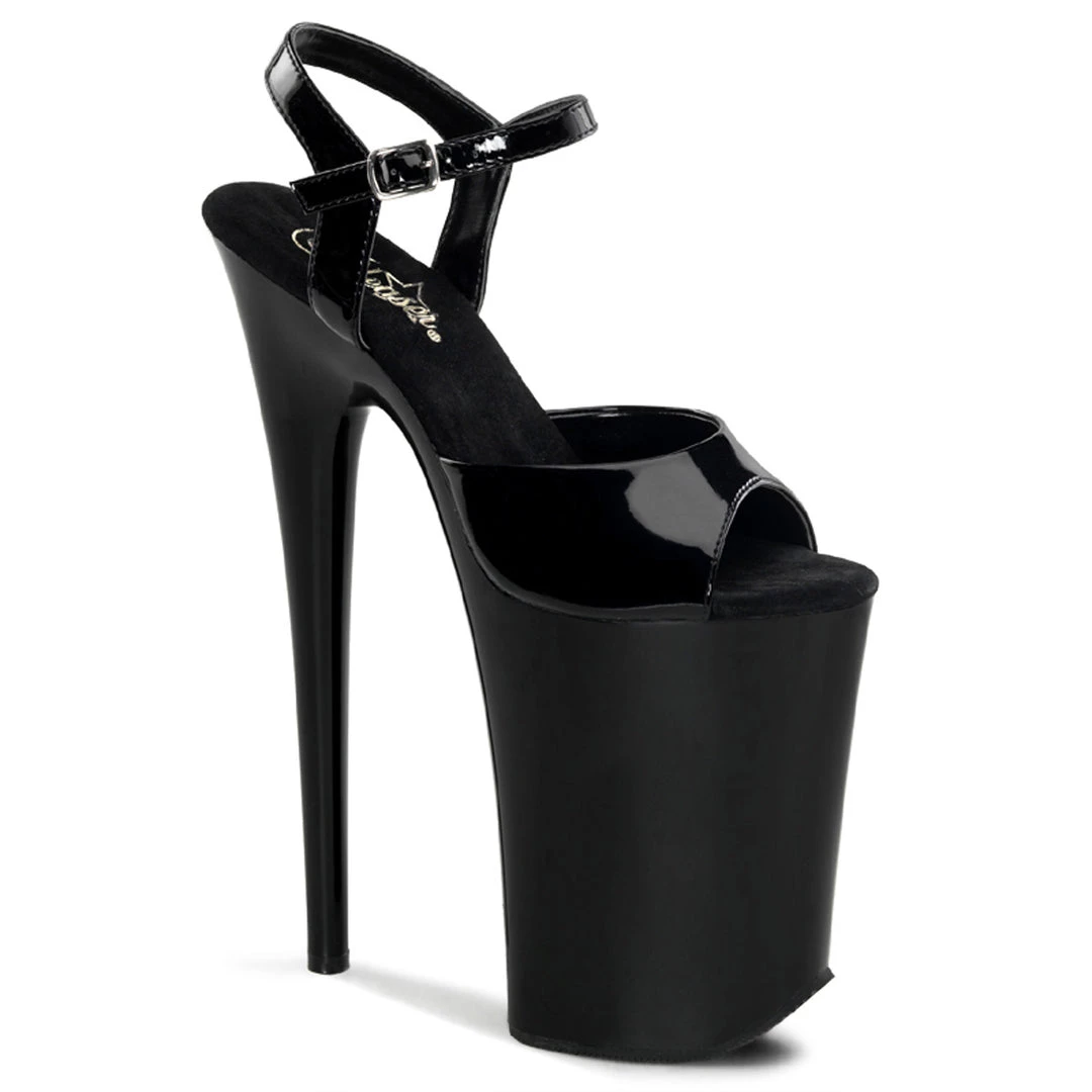 Black Patent Platform Ankle Strap Sandal