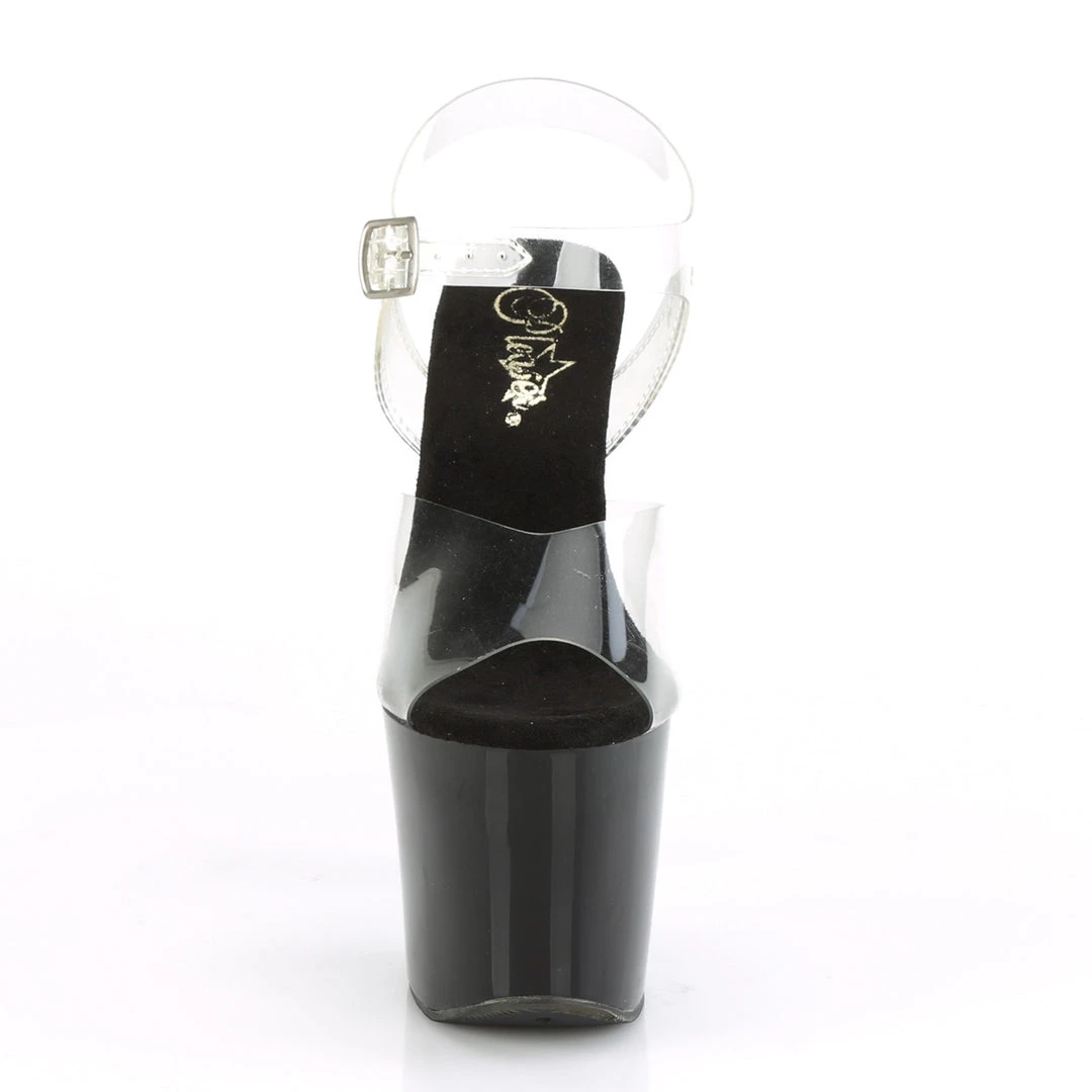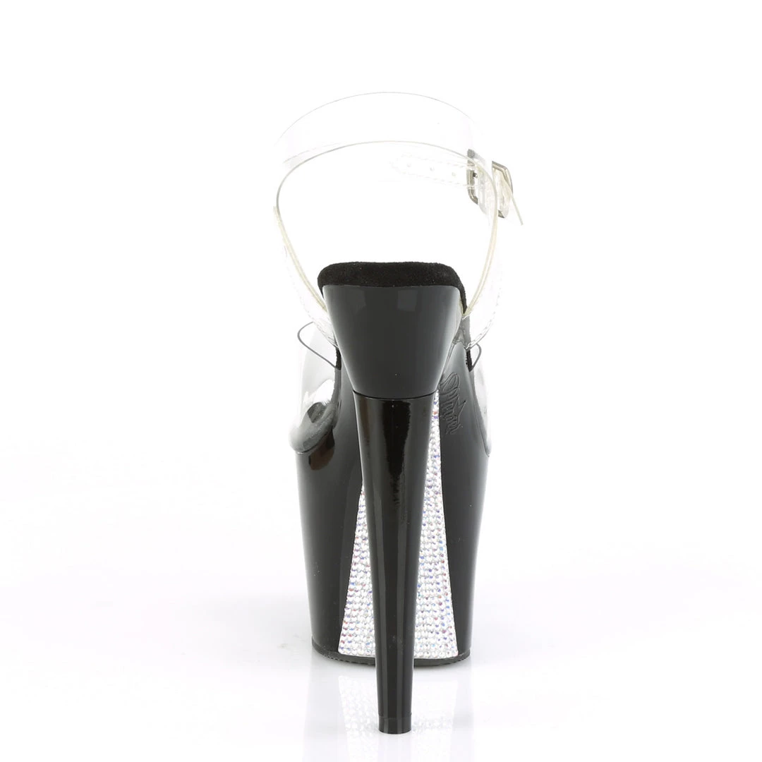 Platform Ankle Strap Stripper Sandal with Contrast Rhinestones on the Platform Underside & Front of Heel‚