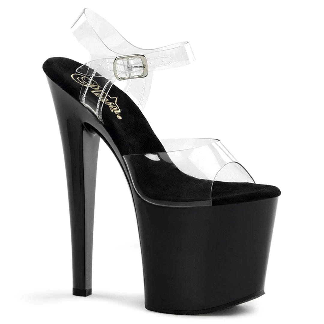 Clear Upper Black Platform Ankle Strap Stripper Sandal