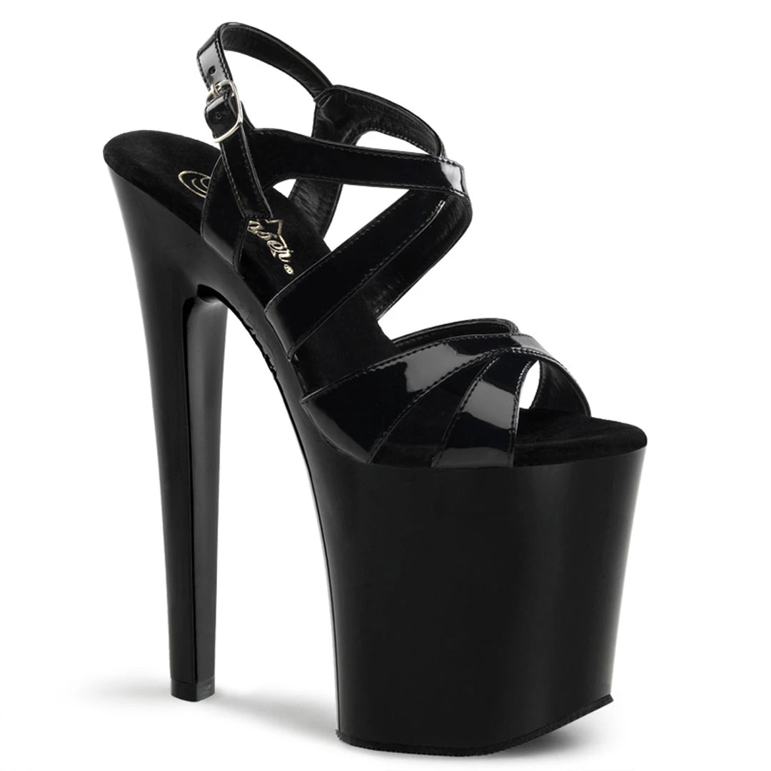 Black Patent Platform Strappy Exotic Dancer Shoes